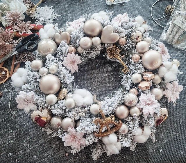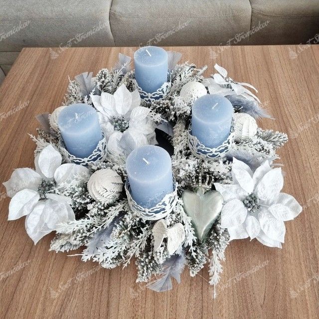 Vijenac ima promjer 50 cm i isporučuje se već rastavljen. Ovaj bijeli božićni vijenac pogodan je kao ukras za stol, vrata, a može vam uljepšati i zid ili kamin.