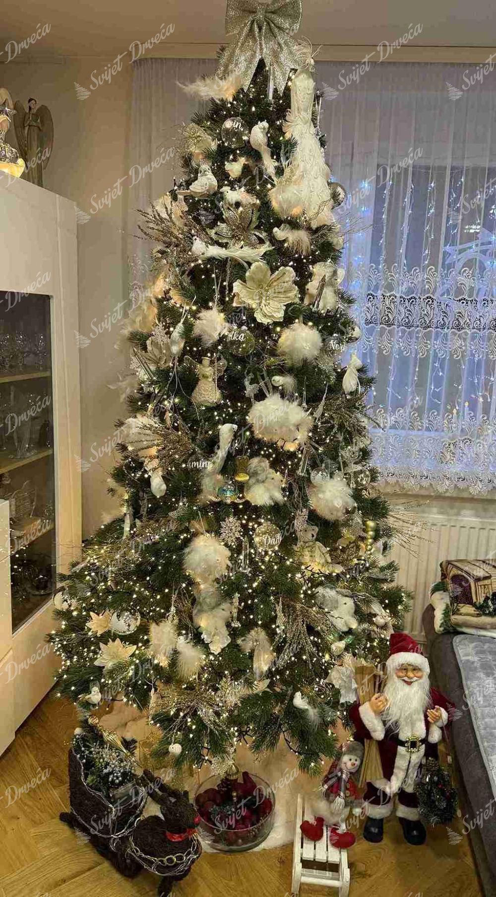 FULL 3D božićno drvce, visina 240 cm, širina 145 cm, dizajn – debeo, tip igle – FULL 3D, duljina vrha – 20 cm, stalak – metal, broj dijelova – 3