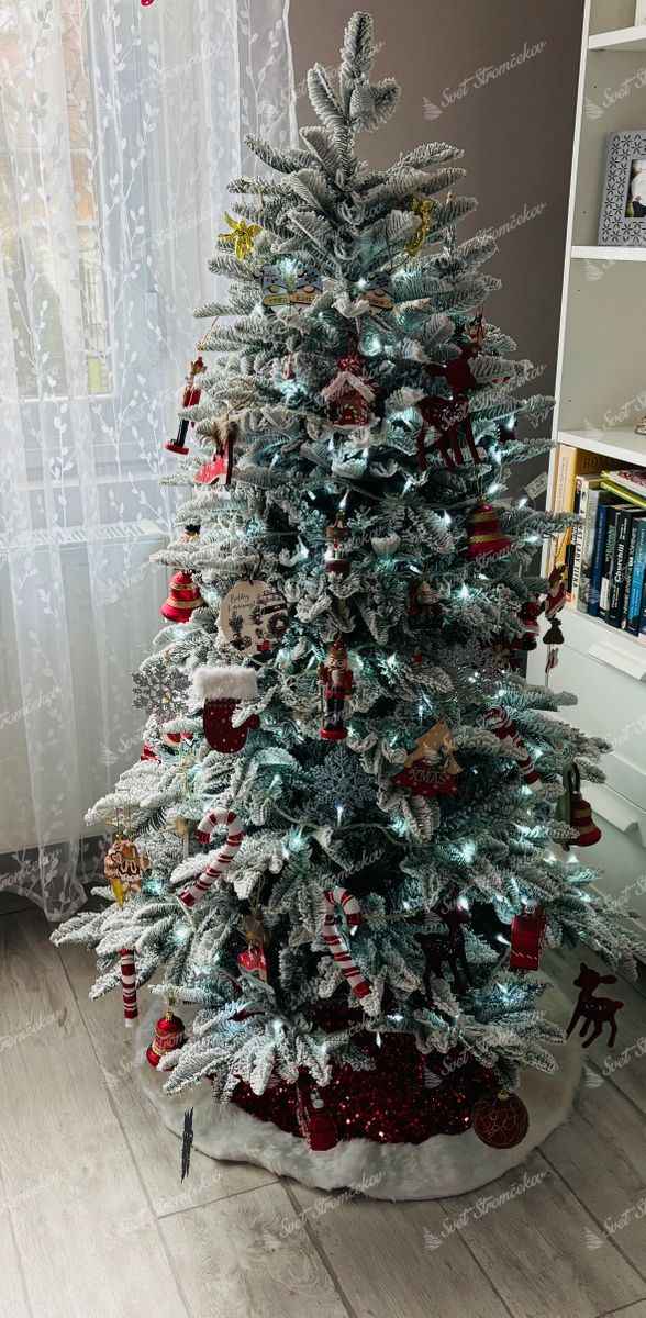 Gusto snijegom prekriveno božićno drvce, 3D Alabaster Jela, raskošno je drvce koje svojim snježnim, zimskim izgledom dočarava savršenu, bajkovitu božićnu atmosferu u svakoj prostoriji. Ovo drvce prekriveno snijegom ima duge zelene 3D grane jele koje nježno vise ispod debelog sloja umjetnog snijega, dajući drvetu jedinstven izgled.