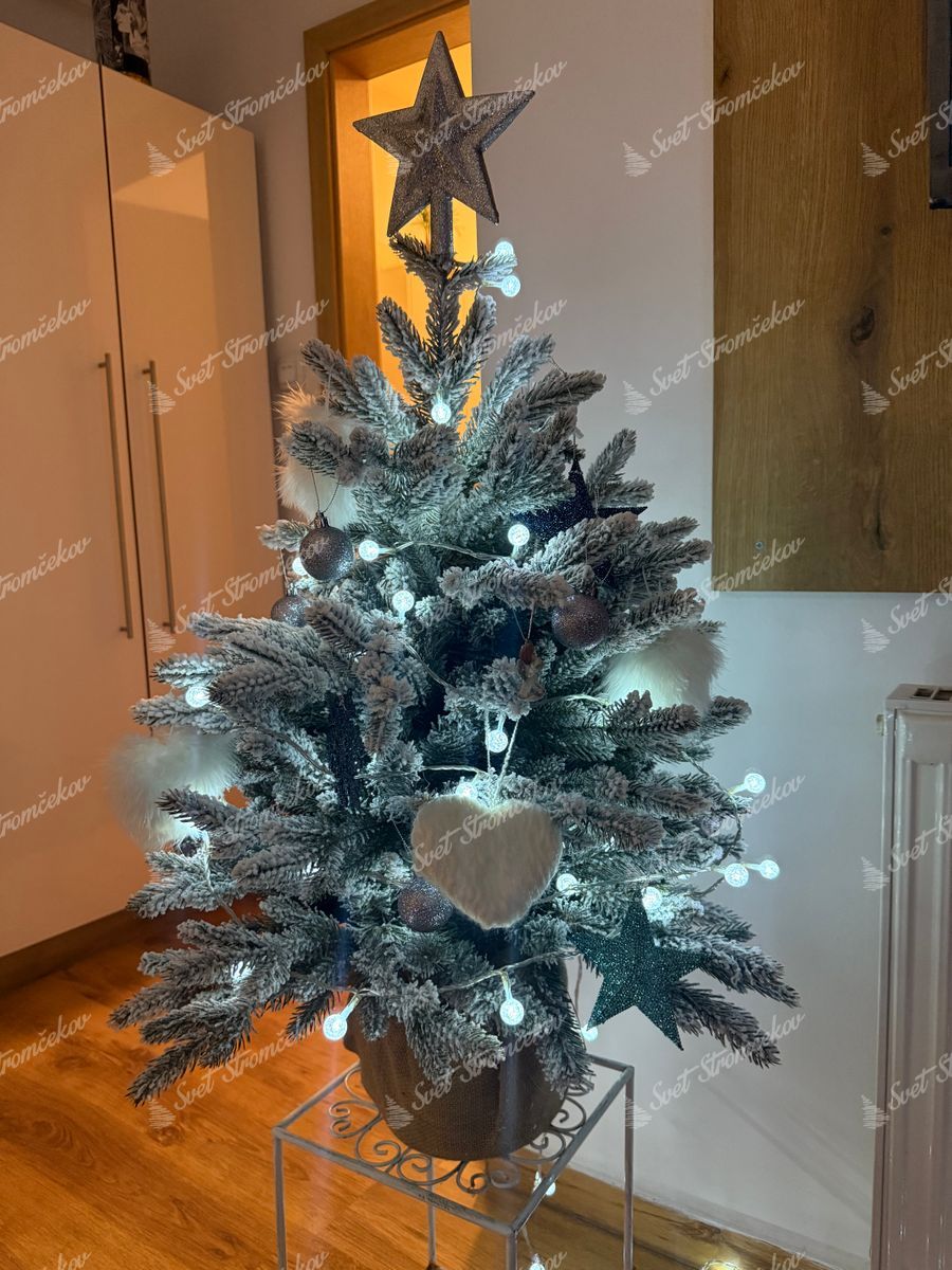 Njegove bijelo-zelene grančice možda očaraju svakoga tko čezne za kraljevskim ledenim Božićem. 3D iglice po cijelom obodu drveta nadopunjuju klasične PVC iglice koje su gusto prekrivene snijegom. Najsuvremeniji sustav nanošenja umjetnog snijega na stablo garantira da snijeg ne pada.